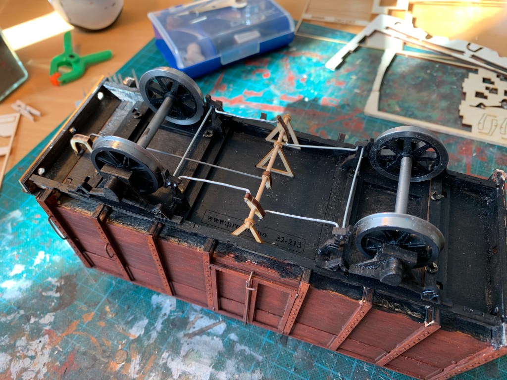 Efter den nemme opbygning af vognkassen var det et større arbejde at bukke og sætte greb og bøjler på vognen. Noget af ståltråden, der fulgte med, var tydeligvis skabt af mithril – dværgestål – i vulkanen Mount Dooms indre og krævede store kræfter at bukke og klippe over, men til gengæld blev det også meget solidt!