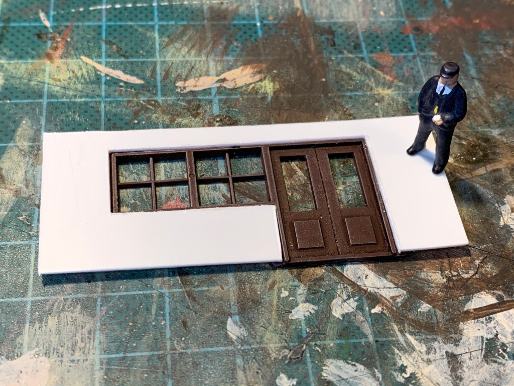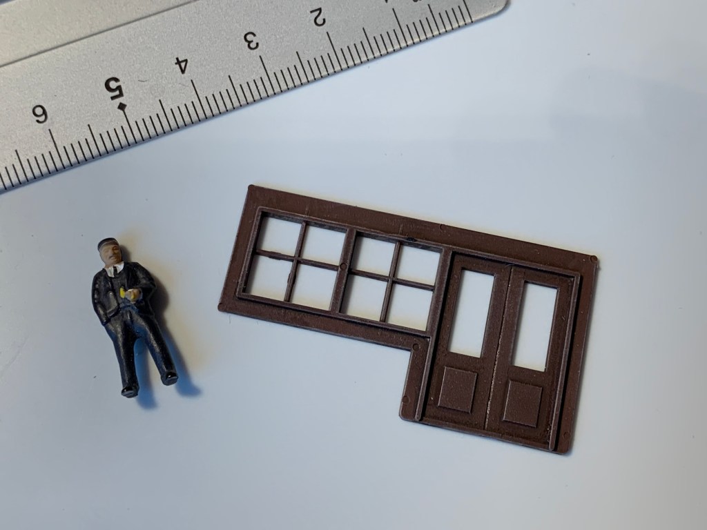 Sådan én måtte jeg bygge. Ved at rode i gemmerne fandt jeg en figur, som kunne være hr. Brünnich, og jeg fandt også en dobbeltdør med et dobbeltvindue – endda malet og patineret!