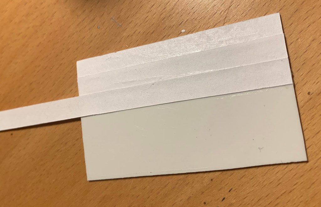 Et lille trick til når man arbejder med murstenspapir: Skær ikke papiret tæt, men efterlad måske en halv centimeter, så du kan folde den rundt på bagsiden. På den måde kommer der også tekstur på siderne af murens åbninger.