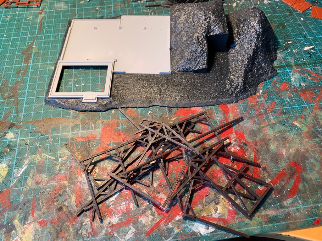 Byggesættet inkluderede en snedig todelt base, som skulle limes sammen. Derved var det nemt at male hver del for sig. Den store base gjorde samtidig byggesættet til et minidiorama.