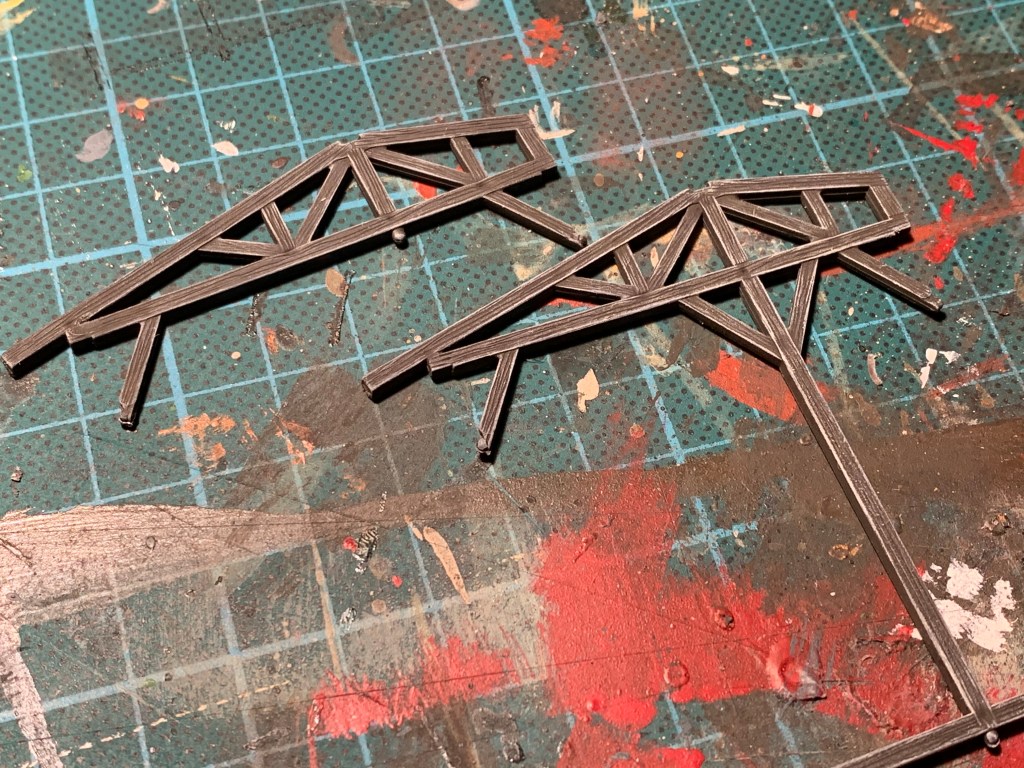 Der var også nogle kasser – jeg malede dem grå og tørbørstede dem for at få detaljerne frem, men jeg ved ikke rigtigt, hvad det skal forestille. Men det gør nok heller ikke så meget, eftersom de står ret diskret inde i det overdækkede rum.