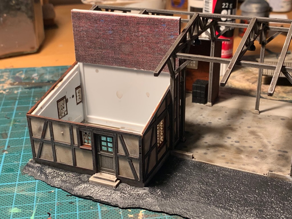 Et fint lille bindingsværkshus rummede sikkert kontor og fik en kraftig gang patinering. Bindingsværket daterede industribygninger til årtierne på begge sider af år 1900, og det passer jo fint til min modelverden.