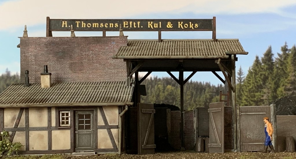 Undervejs havde jeg tænkt en del over, hvad kulhandlen skulle hedde. Der fulgte et tysk epoke III skilt med byggesættet, men det duede jo ikke.