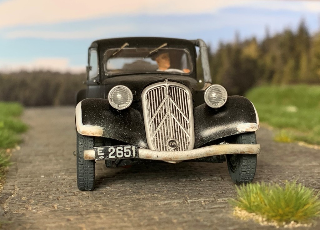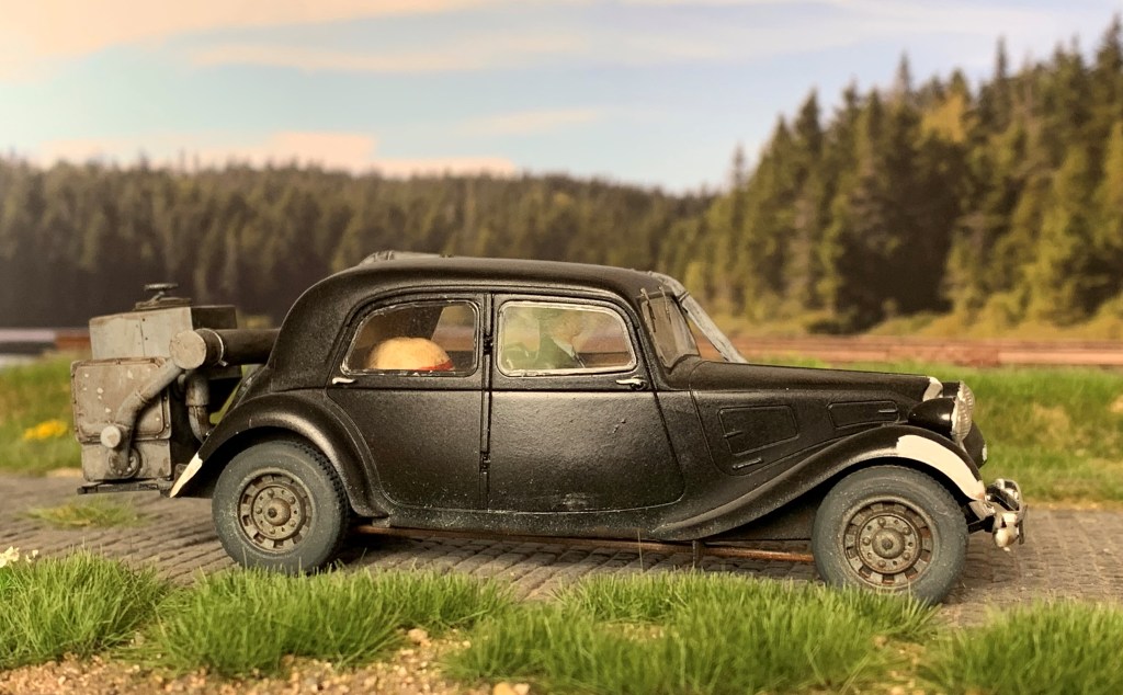 Begge typer løsninger hører naturligvis også hjemme på modeljernbanen sat omkring besættelsestiden, og derfor er jeg meget glad for at kunne indlemme en flot model af en Citroën Traction 11CV i samlingen.