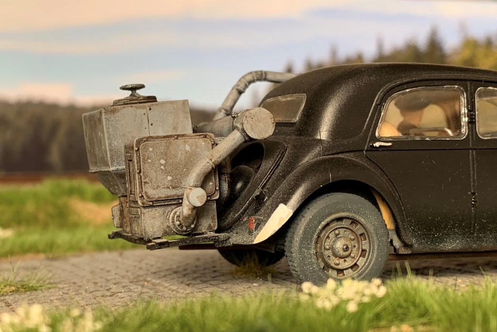 Grundmodellen er et byggesæt fra Tamiya i skala 1:35, tilføjet et resinbyggesæt af en gasgenerator og andre detaljer. Læs mere om byggeriet på Nystrup Grus’ blog.