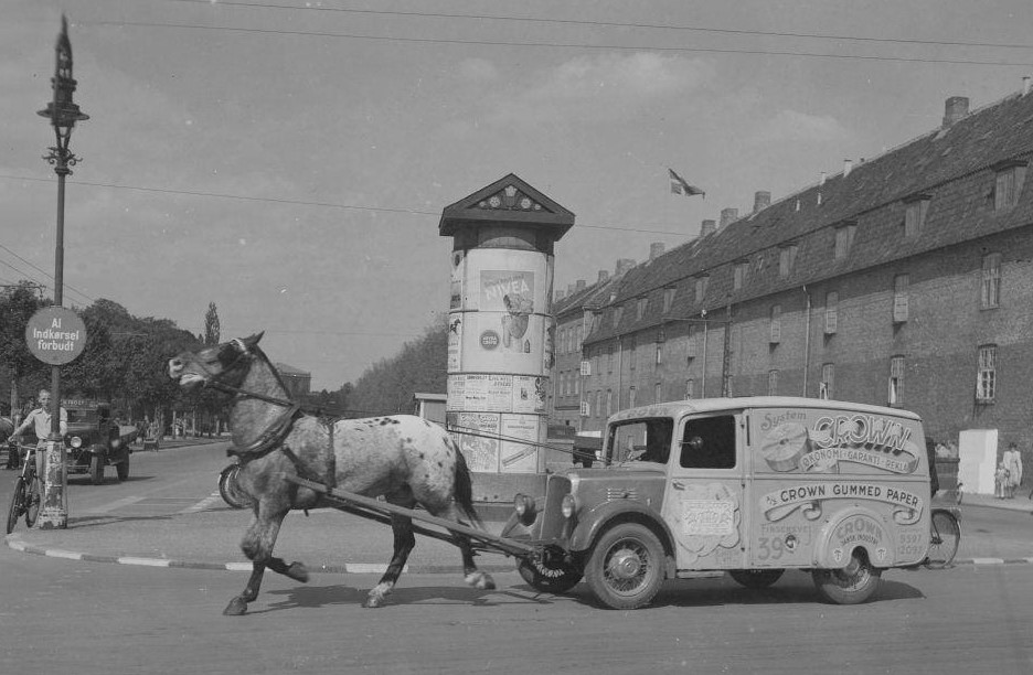 Men opfindsomheden var stor, og hestene fik en renæssance. Hestetrukne køretøjer blev stadig brugt i stor stil, og nu blev hestene også spændt for mere eller mindre ombyggede motorkøretøjer. En enkelt hestekraft er dog ikke meget til en tung varevogn, så det har næppe gået stærkt!